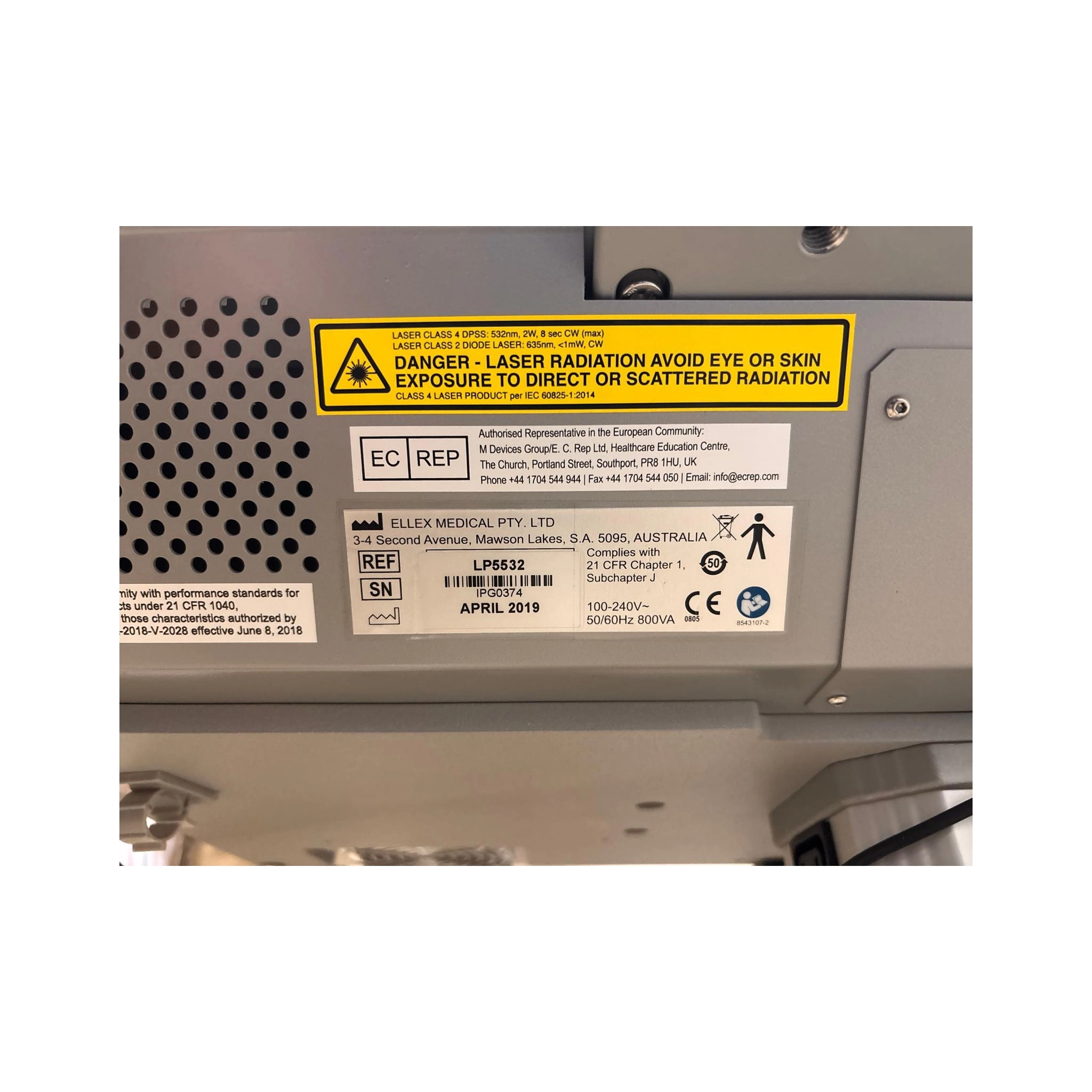 Láser amarillo Ellex Integre Pro en perfecto estado.